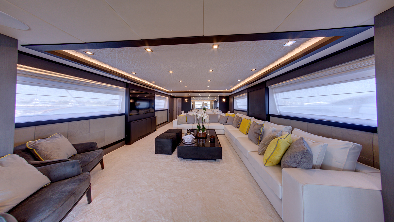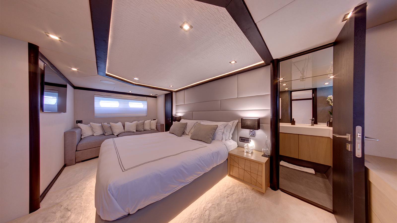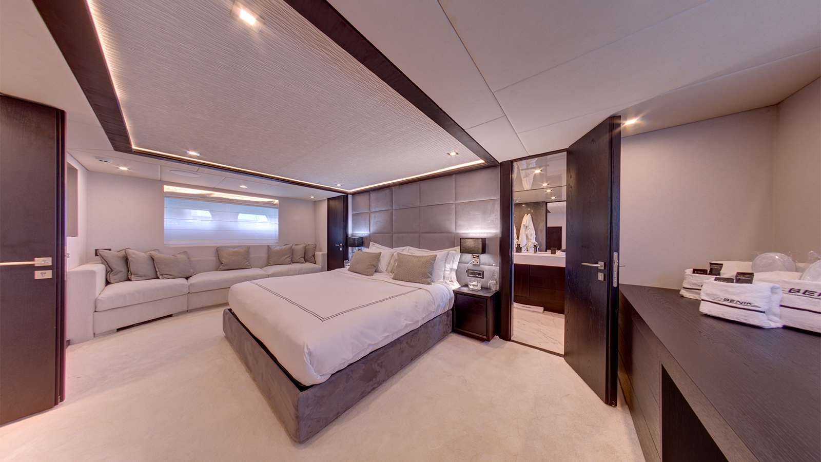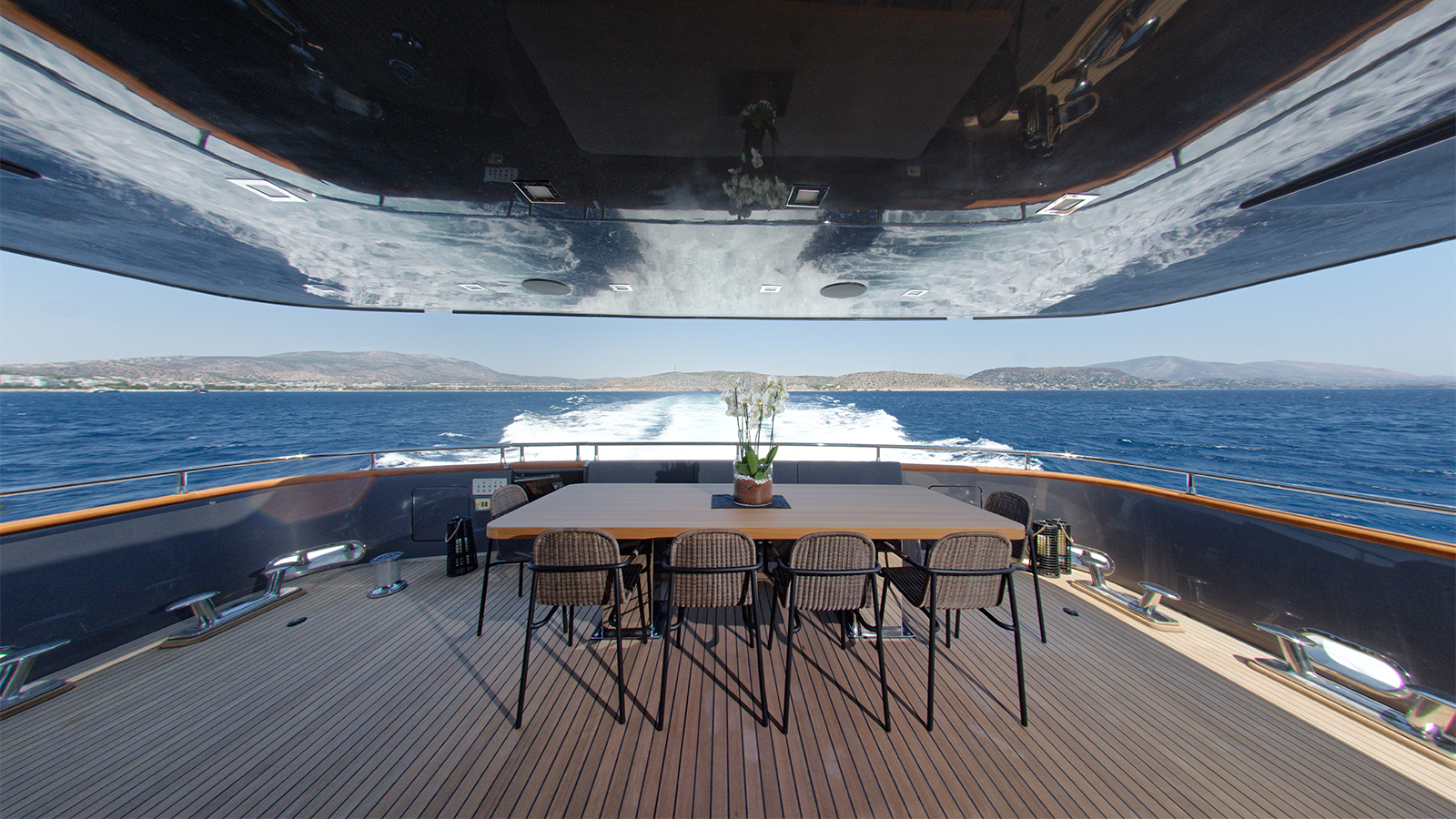 An exceptional family-friendly yacht, 33.5m (109’11”) M/Y NOEMA offers her 12 guests spacious accommodation, a host of luxury amenities and state of the art technologies. NOEMA is a fantastic charter choice for families. She provides ample shade throughout her exterior areas – perfect for shielding from the sun’s rays while still enjoying the best of life al fresco. Her versatile sundeck has been designed as the social hub on board, with space for sunbeds, a full dining table and generous amounts of comfortable sofa seating. Enjoy a morning coffee with a view, have a dip in the 6-seated jacuzzi or take in the beauty of the cruising grounds with a sundowner cocktail as you relax in this space.