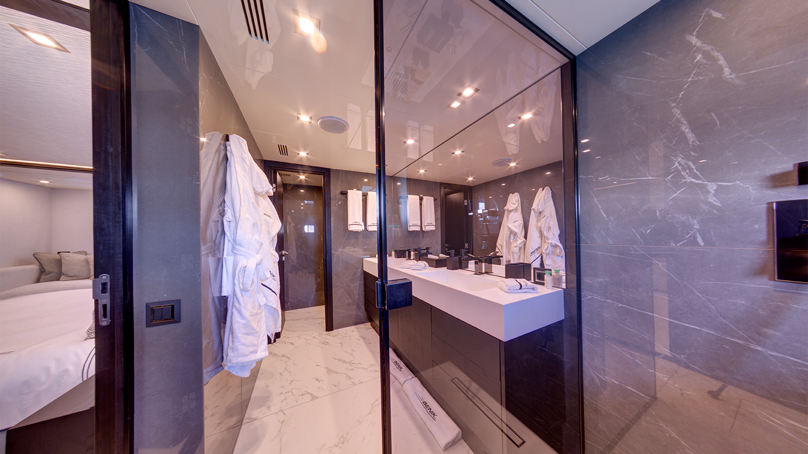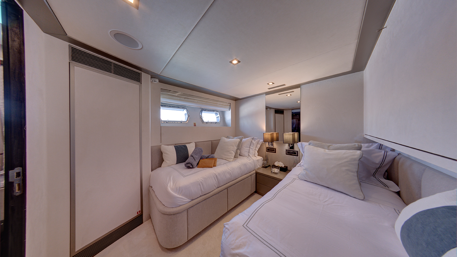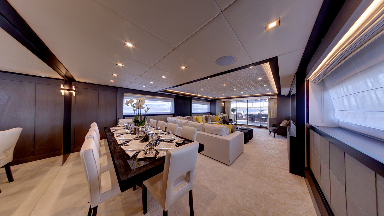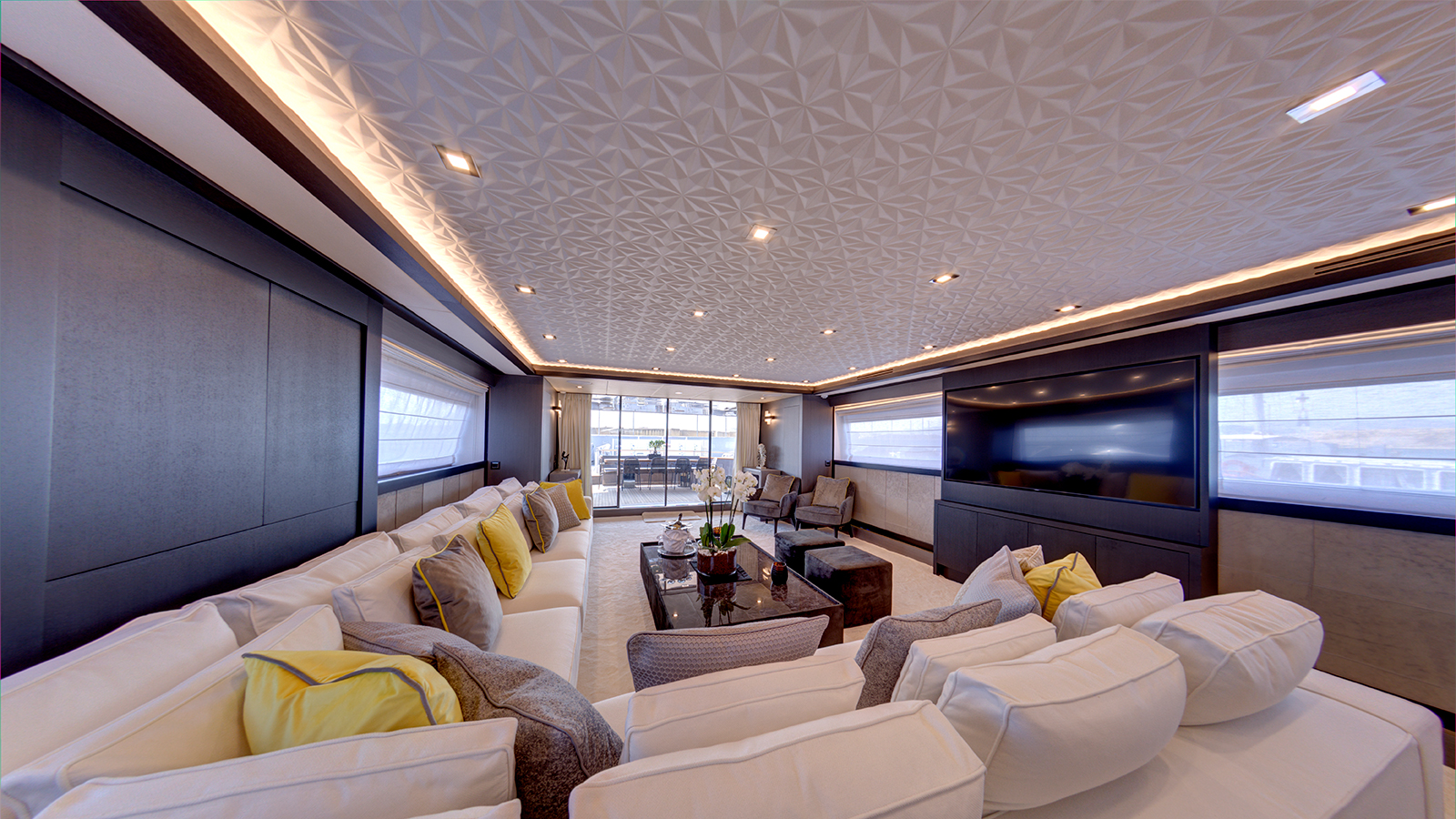An exceptional family-friendly yacht, 33.5m (109’11”) M/Y NOEMA offers her 12 guests spacious accommodation, a host of luxury amenities and state of the art technologies. NOEMA is a fantastic charter choice for families. She provides ample shade throughout her exterior areas – perfect for shielding from the sun’s rays while still enjoying the best of life al fresco. Her versatile sundeck has been designed as the social hub on board, with space for sunbeds, a full dining table and generous amounts of comfortable sofa seating. Enjoy a morning coffee with a view, have a dip in the 6-seated jacuzzi or take in the beauty of the cruising grounds with a sundowner cocktail as you relax in this space.